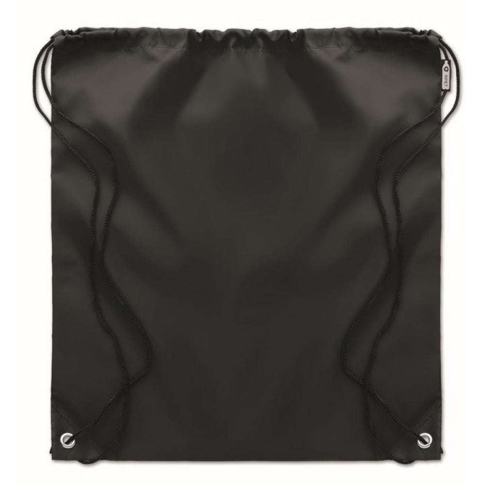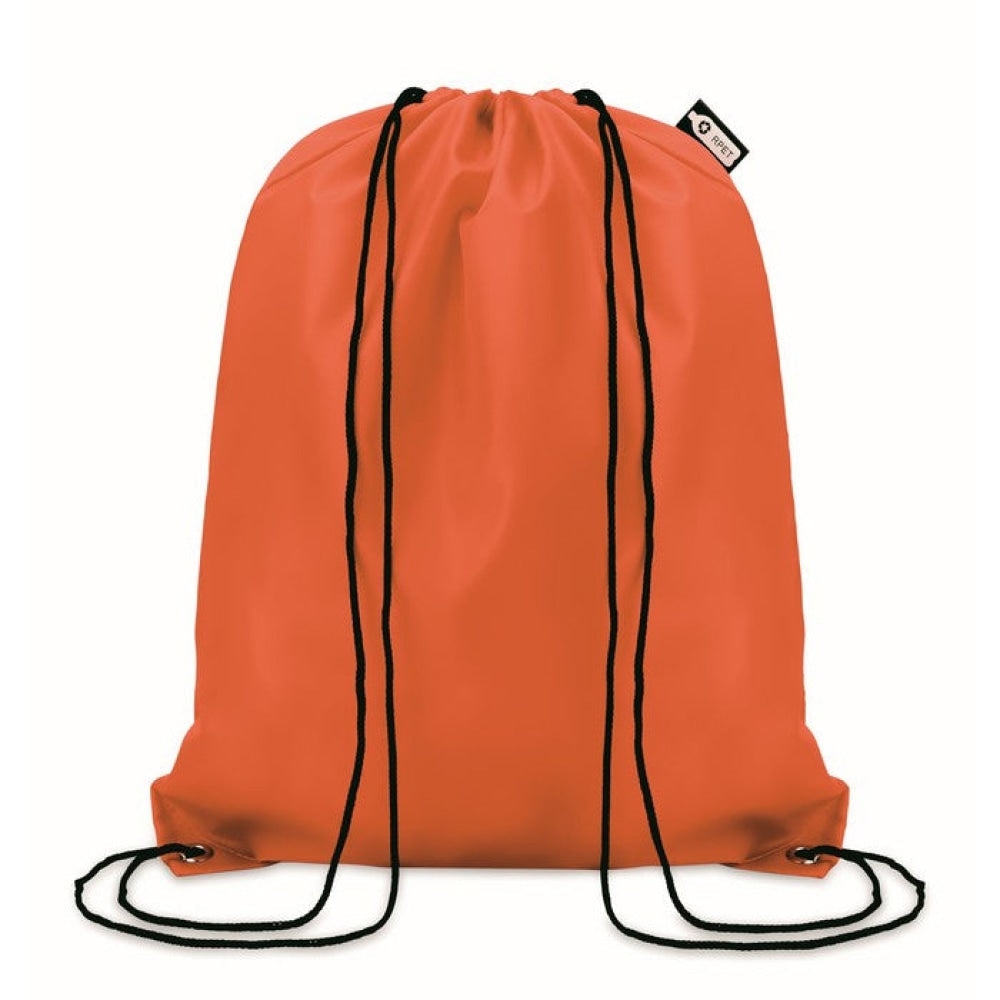 Sacca in RPET 190T con cordini in PP. Materiale proveniente da bottiglie riciclate. Stampa in sublimazione disponibile sono sull’articolo di colore bianco.